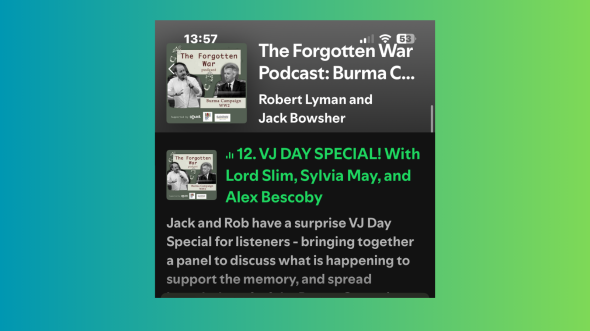 Jack Bowsher and Rob Lyman have a surprise VJ Day special for listeners - bringing together a panel to discuss what is happening to support the memory, and spread knowledge of, the Burma Campaign through their various work. Joining the FWP team are Lord Slim representing the Burma Star Memorial Fund, Sylvia May of the Kohima Educational Trust, and Alex Bescoby of Help 4 Forgotten Allies, and his new documentary on Sky History with Levison Wood - The Last Burma Star.